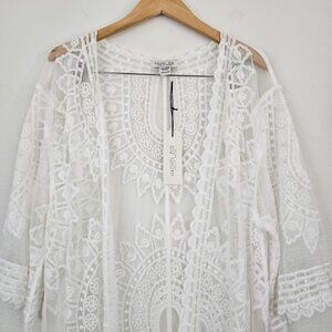 Rachel Zoe Lace Duster White Kimono Cover Up Embroidered Open Front OS Boho