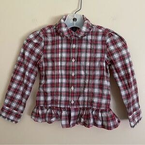 Polo Ralph Lauren Button Up Tartan Plaid Peplum Shirt Toddler Girl's Size 3T