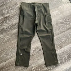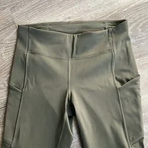 Olive green leggings in excellent condition,measurements laying flat waist 13.5”/hips 15”/rise 10”/inseam 20.5”/length 28”
