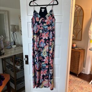 Never worn. Chic Nicole Miller dress with floral accents. Dark blue base. Perfect for any occasion. Has a built in shelf bra.