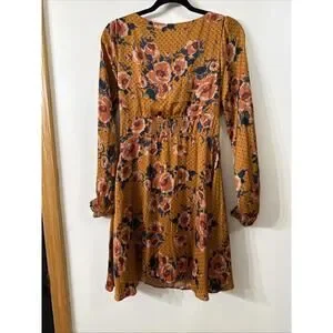 Free People Long Sleeves Autumn Gold Floral Dress Sz 6/8 Knee Length Fall Boho