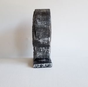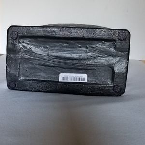 This holiday seasonal piece is stunning for indoor and outdoor décor to display on mantel, table or patio. Sturdy and durable perfect creative decoration for party or holiday. Handcrafted from poly resin with ornate details. Color Gunmetal Silver. Weight approx. 3-3.5lbs. Dimensions = 7" L x 11.25" H x 3.75"D. New with tag.