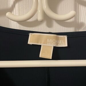 This stunning black sheath mini dress by Michael Kors is perfect for a night out. Featuring a chic cowl neck and stylish cap sleeves, it offers a sophisticated and modern look. Its sleek design ensures a flattering fit, making it a standout piece for any cocktail occasion.