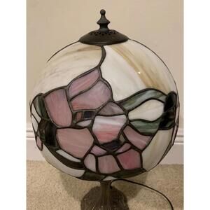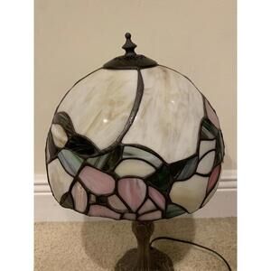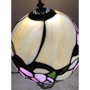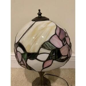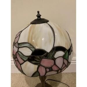 Tiffany-style 16" to the top of the finial. Stained Slag Glass Table Lamp Floral Design.