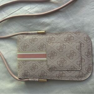 Guess pink and cream phone case with adjustable strap