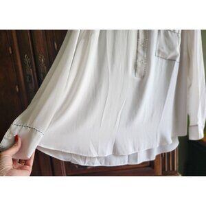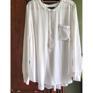 Lane Bryant Lng Slv Chiffon Blouse Pocket White w/ Black Whip Stitching Sz 18/20