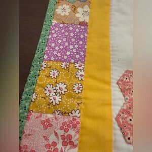Brighten your home with this charming floral patchwork quilt. Featuring vibrant green and yellow accents, this quilt adds a touch of warmth and style to any room.
