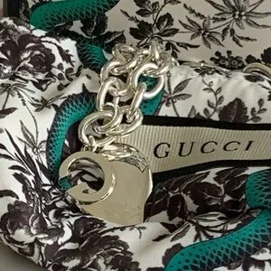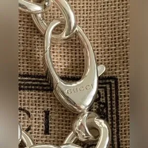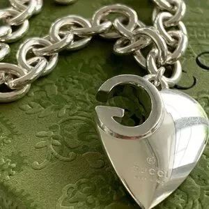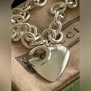 🔥🔥🔥AUTHENTIC Gucci Sterling Silver GG Design Heart Charm Bracelet🔥🔥🔥