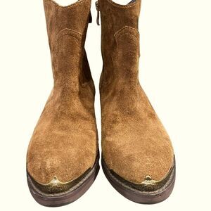 Very Volatile Chocolate Brown Suede Western Boots Chic Metal Detail Toe & Heel