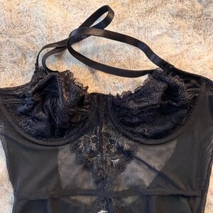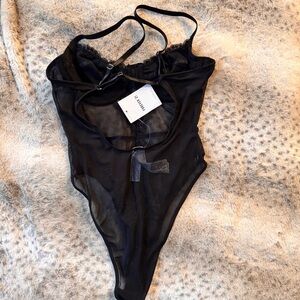 Elegant Black Lace Bodysuit, No Snap - Size Medium - NEW with Tags