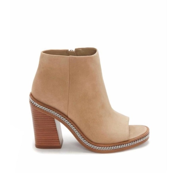 NIB Vince Camuto Bitnny Chain Peep Toe Suede Booties