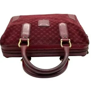 A vintage handbag from CELINE. Made of an elegant combination of leather and suede, the deep burgundy color is appealing. The gold metal, macadam pattern, and leather logo are elegant, and the design is simple yet luxurious. This handbag-style mini Boston bag is perfect for a wide range of occasions, from daily use to special occasions.