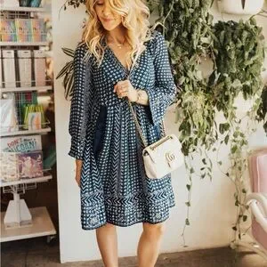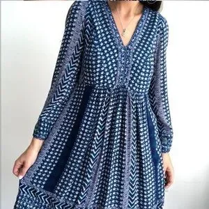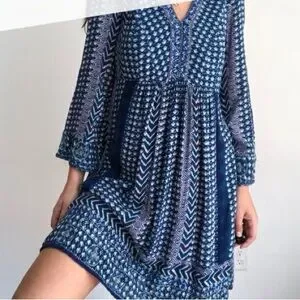 This elegant blue patterned dress is perfect for any occasion. Its stylish design and comfortable fit make it a must-have in your wardrobe.
