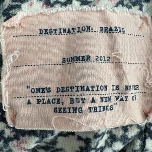 Special collection detail: Internal label reads "DESTINATION... BRAZIL SUMMER 2012 – One's destination is never a place, but a new way of seeing things".