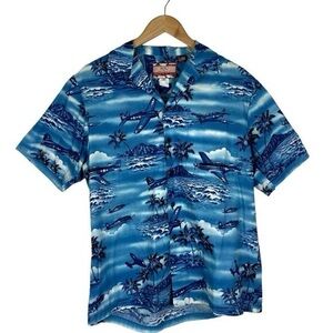 RJC MENS Blue Vintage Hawaiian Short Sleeve Graphic Shirt US M
