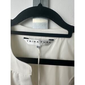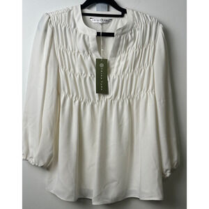 NEW $228 Trina Turk Women XS Ivory Azalea Stretch Billowy-Sleeve Blouse Top A57