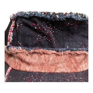 • The cabbie cap silhouette offers a timeless look, while the unique patchwork and raw edges add a modern twist. This hat is ideal for those seeking to elevate their casual ensemble with a statement piece.
