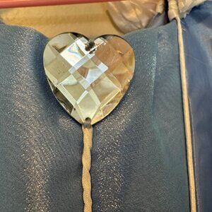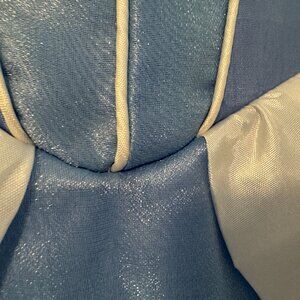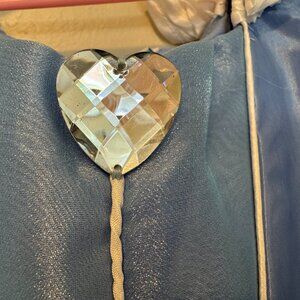Made of a blue taffeta with an organza overlay with a sweetheart neckline.