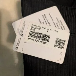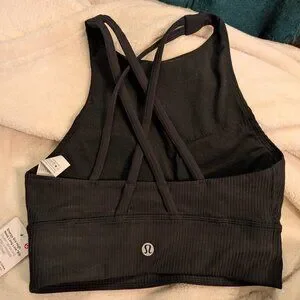 Lululemon black sports bra. High neck, long line, ribbed energy bra. New with tags. (I tried it on once, but it didn't fit me.) Voted most likely to be worn multiple times a week; this all-sport bra is a favorite for comfort and versatility. Intended to provide medium support for B/C cup. Ribbed fabric is sweat-wicking and quick-drying with a rib-like texture. High neck keeps you covered in chaturanga. Pockets for optional, removable cups. Make an offer!