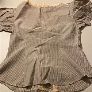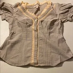 Chic striped blouse with elegant ruffle trim. Perfect for any occasion.
