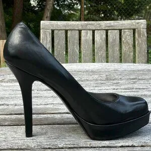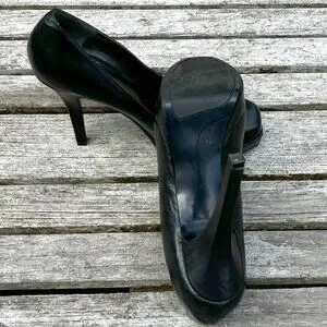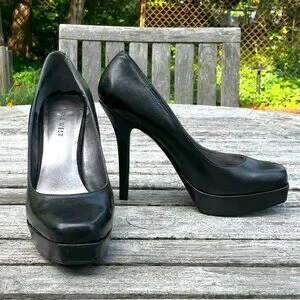 9W Black Leather Platform Pumps - Size 6.5M