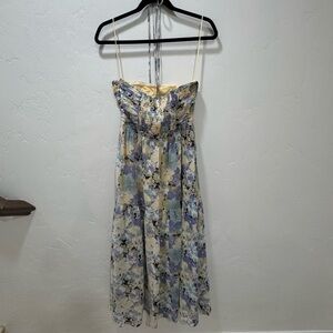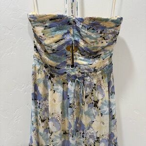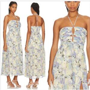 NWT ASTR The Label Small Rozina Blue Green Floral Cutout Halter Maxi Dress