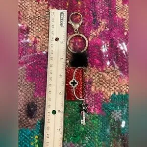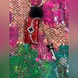 Add a touch of elegance to your accessories with this stunning red keychain. Featuring gold accents, it's perfect for any occasion.