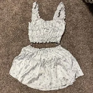 Like new only worn once. Super cute amazing quality top and skirt set. You can tie the strings on the skirt to make it tighter or looser.