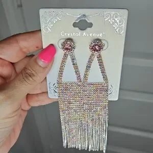Elegant dangle earrings featuring a stunning pink and silver design. Perfect for adding a touch of glamour to any outfit.