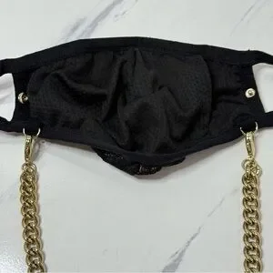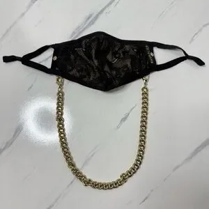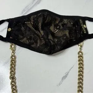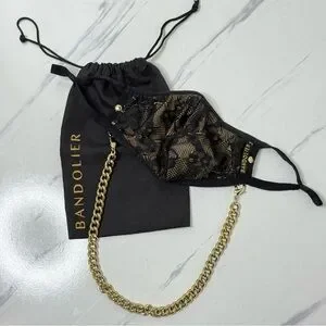NWOT Bandolier Lace Sophie Face Mask Gold Chain Black Beige Adjustable Ear Loops