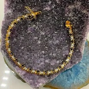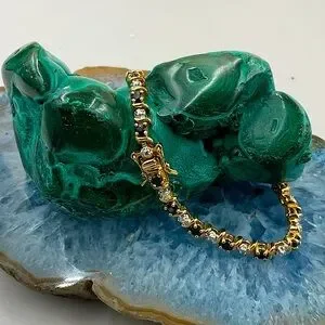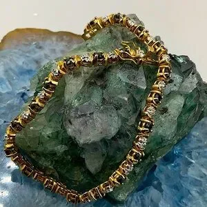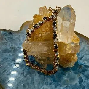 7 1/2” 12KGoldOver Sterling Silver(925) Midnight Blue Sapphire&Diamond Bracelet
