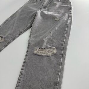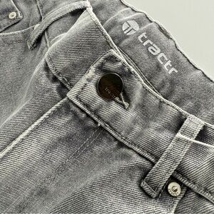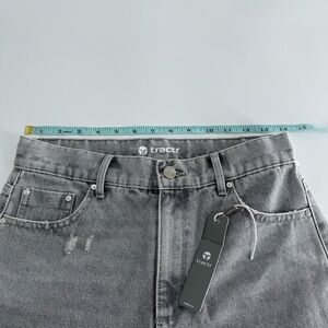 These Tractr jeans showcase a timeless straight leg design in a versatile gray hue, ideal for casual outings. The naturally distressed details lend an authentic, worn-in charm, enhancing their laid-back appeal.