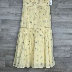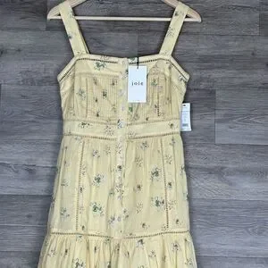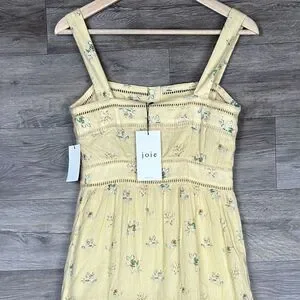 Joie Sundress Sz 0 Yellow Sleeveless Charmesse Floral Cotton Guaze Pintuck Button Front Cottagecore Peasent Coquette NWT