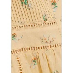 Joie Dress Sz 0 Yellow Floral Cotton Guaze Pintuck Button Front Cottagecore NWT