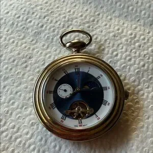 Vintage pocket watch has a stand that you could stand up on your nightstand. It’s a really really sweet pocket watch.