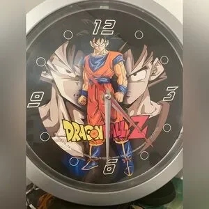 Enhance your space with this Dragon Ball Z wall clock featuring Goku. Perfect for fans, this clock adds a touch of character to any room.