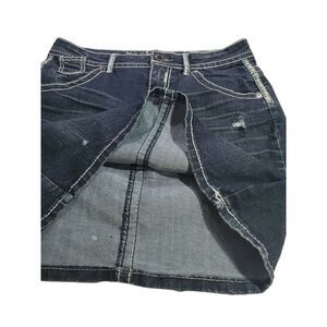 Maurices Skirt Size 5/6 Womens Dark Wash Solid Blue Distressed Midi Denim