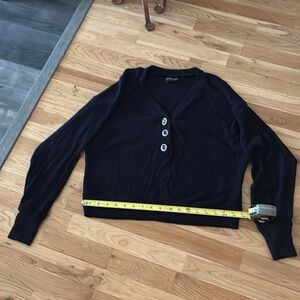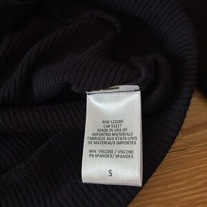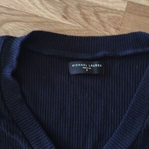 Michael Lauren navy small ribbed crop sweater w blue rhinestone buttons. Fun. Sassy. Comfy fabric. Never worn. No tags. Excellent condition. 96% viscose. 4% spandex.