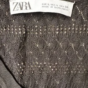 The Zara Black Fitted Sleeveless Tank Top is a stylish addition to any wardrobe. Crafted with a sleek texture, this top offers a form-fitting silhouette that enhances your look. Its sleeveless design and deep scoop neckline provide a modern and versatile style, perfect for layering or wearing alone. The all-black color adds a touch of elegance, making it suitable for various occasions.