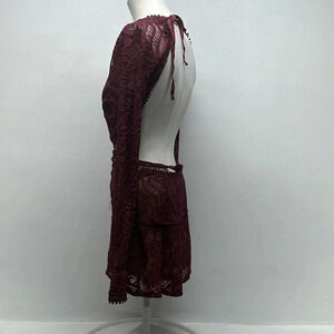 For Love And Lemons Emerie Cut Out Dress Mini Lace Long Sleeve Merlot Red Medium