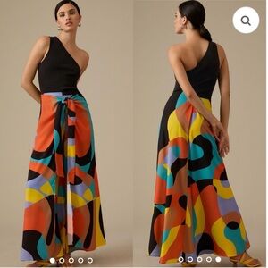 NWT Anthropologie Hutch Sarong Wide-Leg Pants - BLACK MOTIF