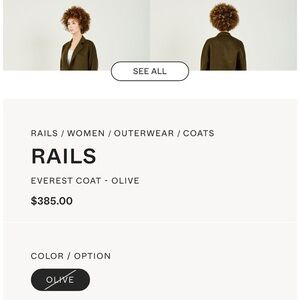 THE EVEREST COAT IN OLIVE BY RAILS. FEATURES A HEAVY WOOL BLEND TRENCH nwt