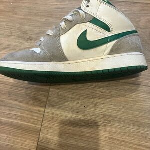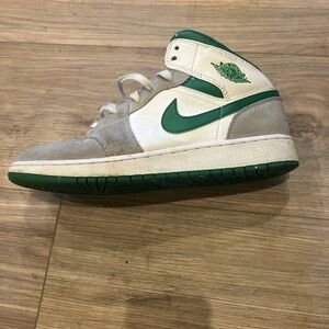NIKE AIR JORDAN 1 MID SE GREY PINE GREEN SNEAKERS MENS SIZE 7Y