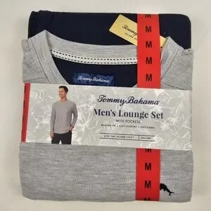 Tommy Bahama Men’s 2-Piece Relaxed Fit Lounge Set Gray& Blue Comfort Pajamas M
