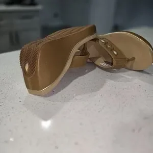 Volatile Tan Wedge Slides with Perforated Design