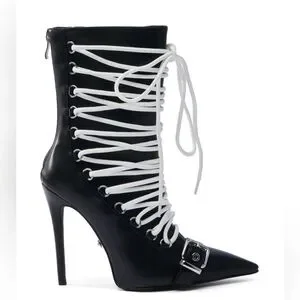 New azalea wang Black Lace-Up Stiletto Boots size 11 Step out in style with these chic black lace-up stiletto boots. Perfect for adding a bold touch to any outfit.
