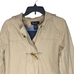 Denim & Co Chore Barn Jacket Medium Beige Hood Toggle Duffle Coat Fleece Lined
