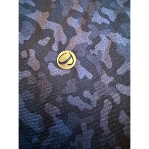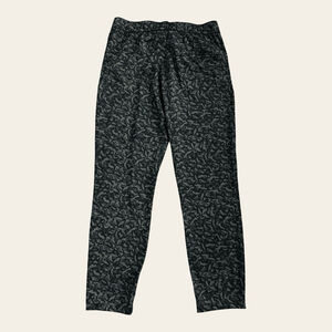 The CRZ YOGA On The Fly pants, size US 8/10, are made of 69% Polyamide and 31% Elastane. These pants feature a black and gray abstract pattern. They have an elastic waistband with a drawstring for adjustability and pockets. The pants are new without tags.