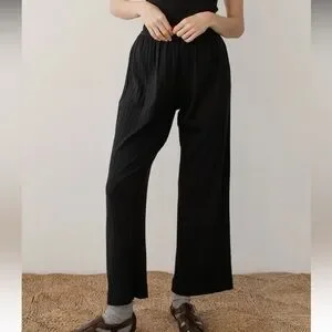The Pointelle Simple Crop Pant is crafted with 100% Organic Cotton, featuring a cropped fit, wide leg and elastic waist.
