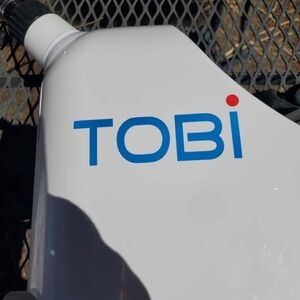 Efficient Tobi steamer in white and aqua. Ideal for quick wrinkle removal.